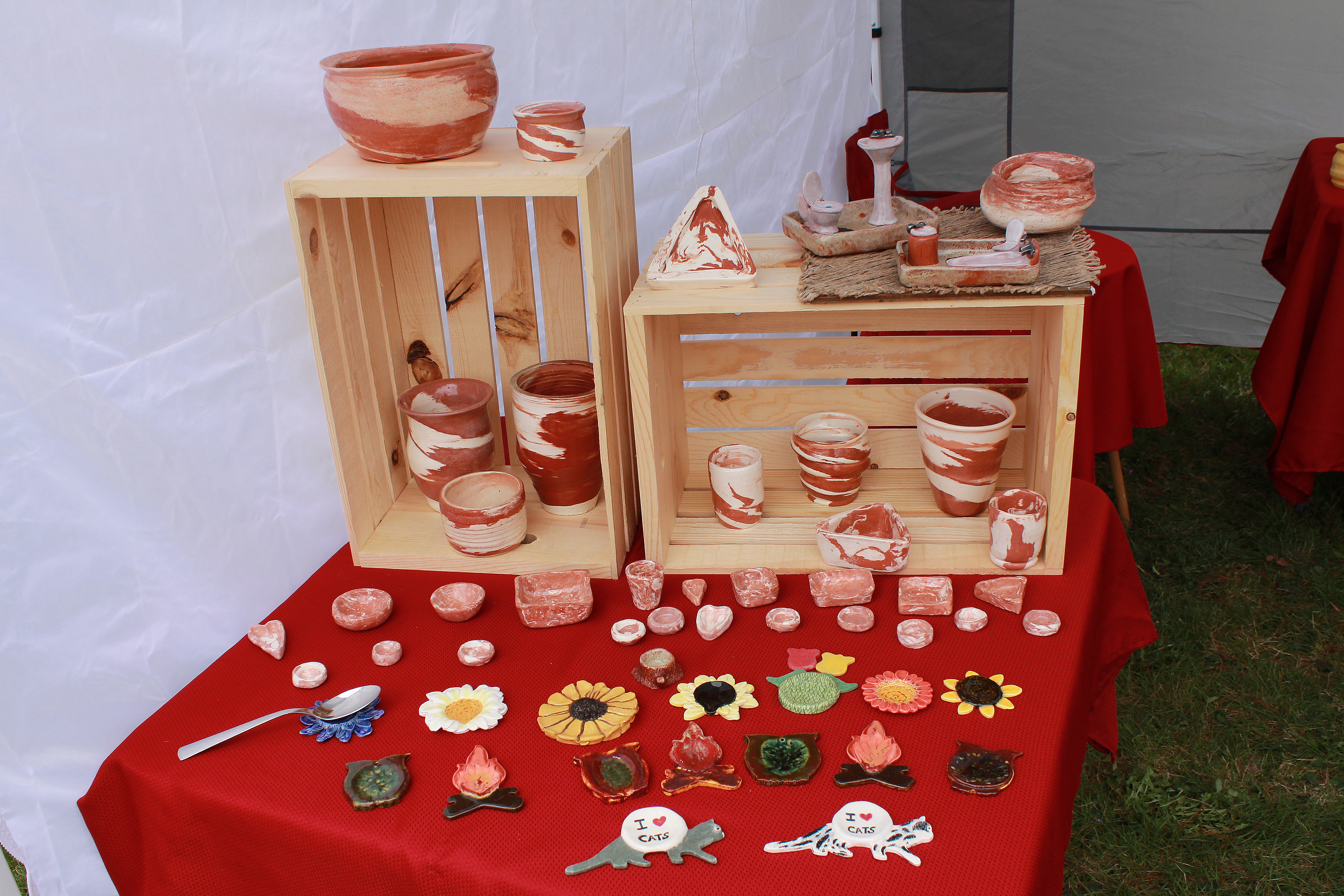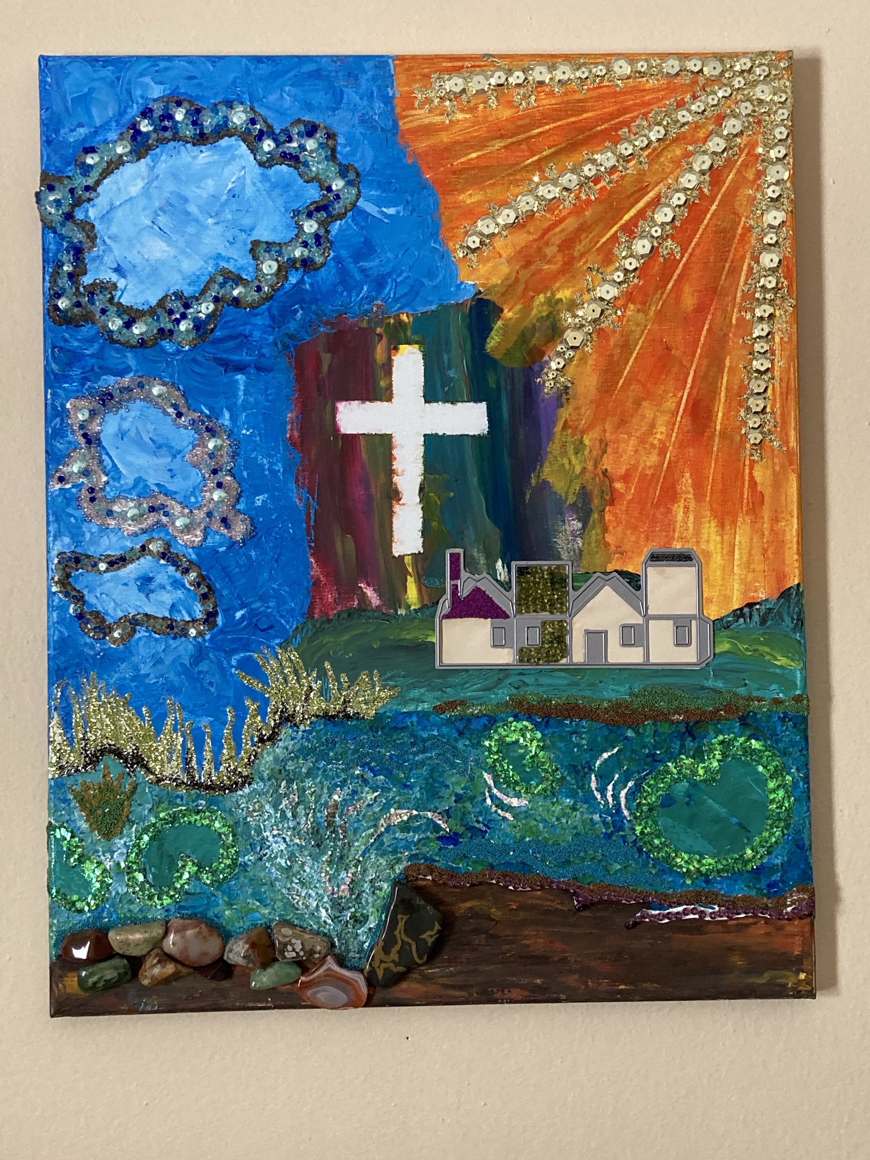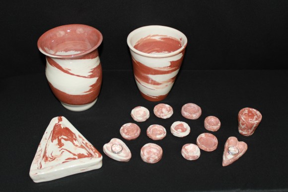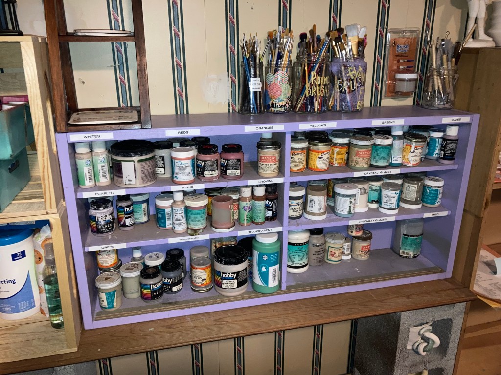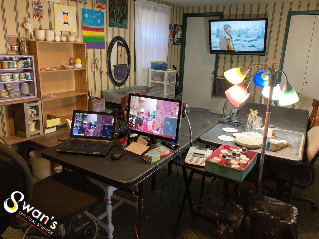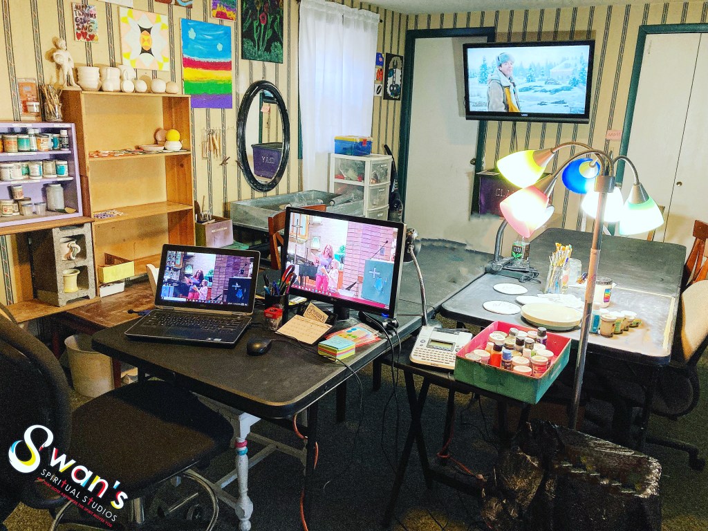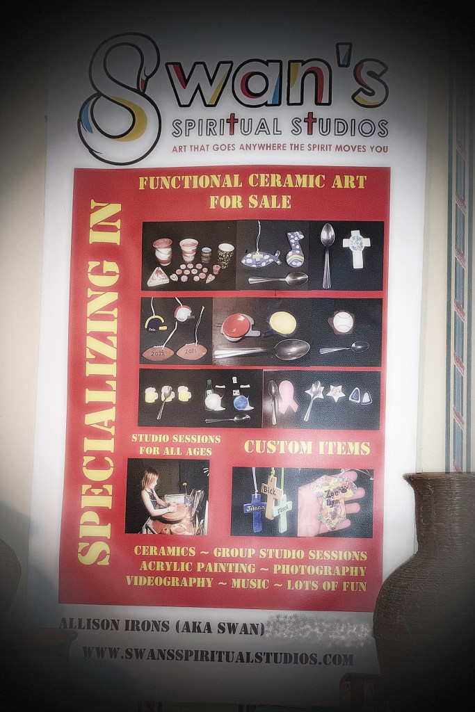 My studio is less of a hobby and more of an inconsistent obsession. When I have time in my busy life I am in my studio. My obsession really does encompass many art forms though. The name SWAN’S SPIRItUAL StUDIOS – with an “s” – is because on any given day you may find me: painting rocks or performing landscape art outside, taking photographs and photoshopping them, using mixed media on canvas, singing and creating the art of music, recording and editing videos or, of course, playing with clay (my favorite).